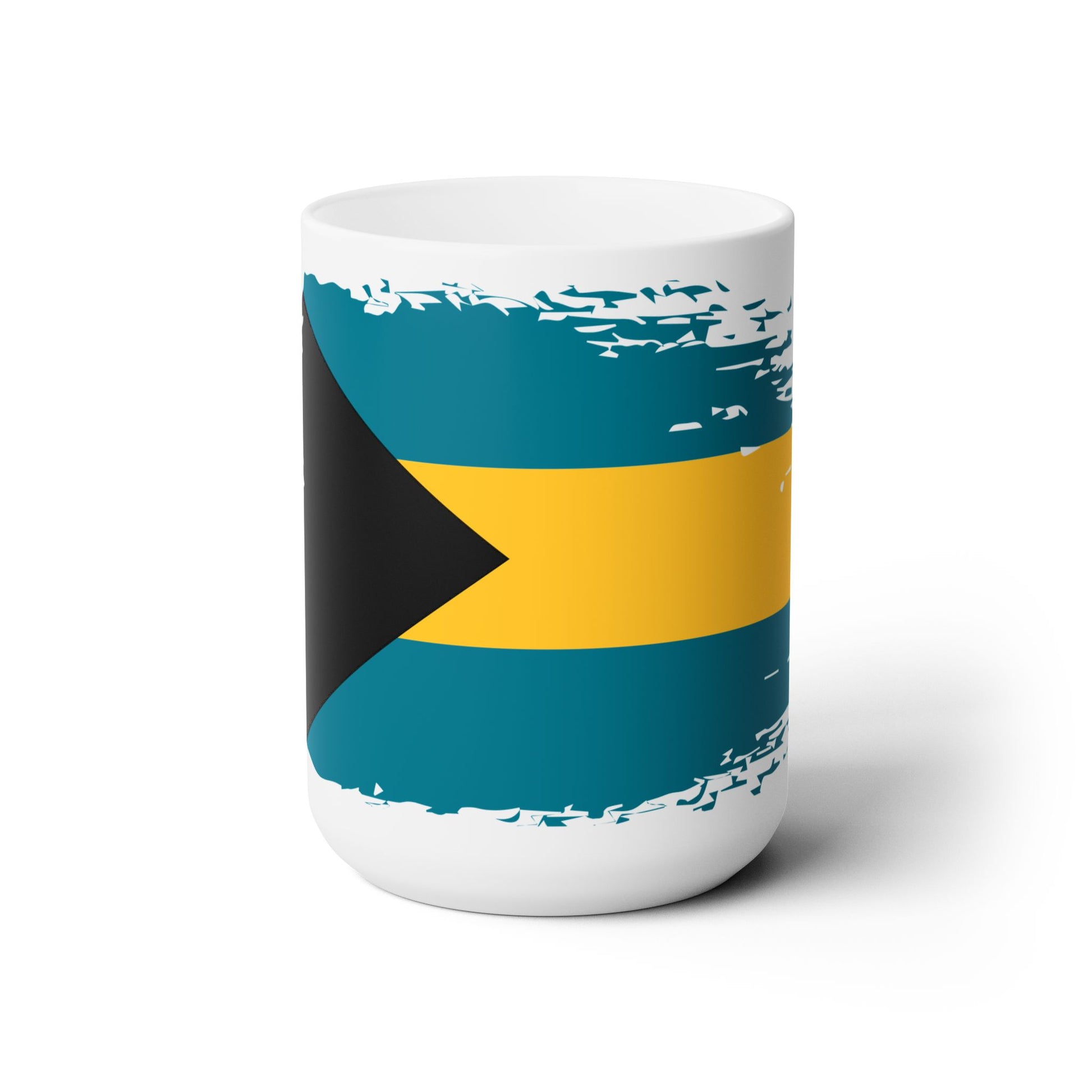 Start your mornings with Bahamian pride! This ceramic mug features the vibrant aquamarine, gold, and black of the Bahamas flag – colors that symbolize the turquoise seas, golden sunshine, and the strength of the Bahamian people.