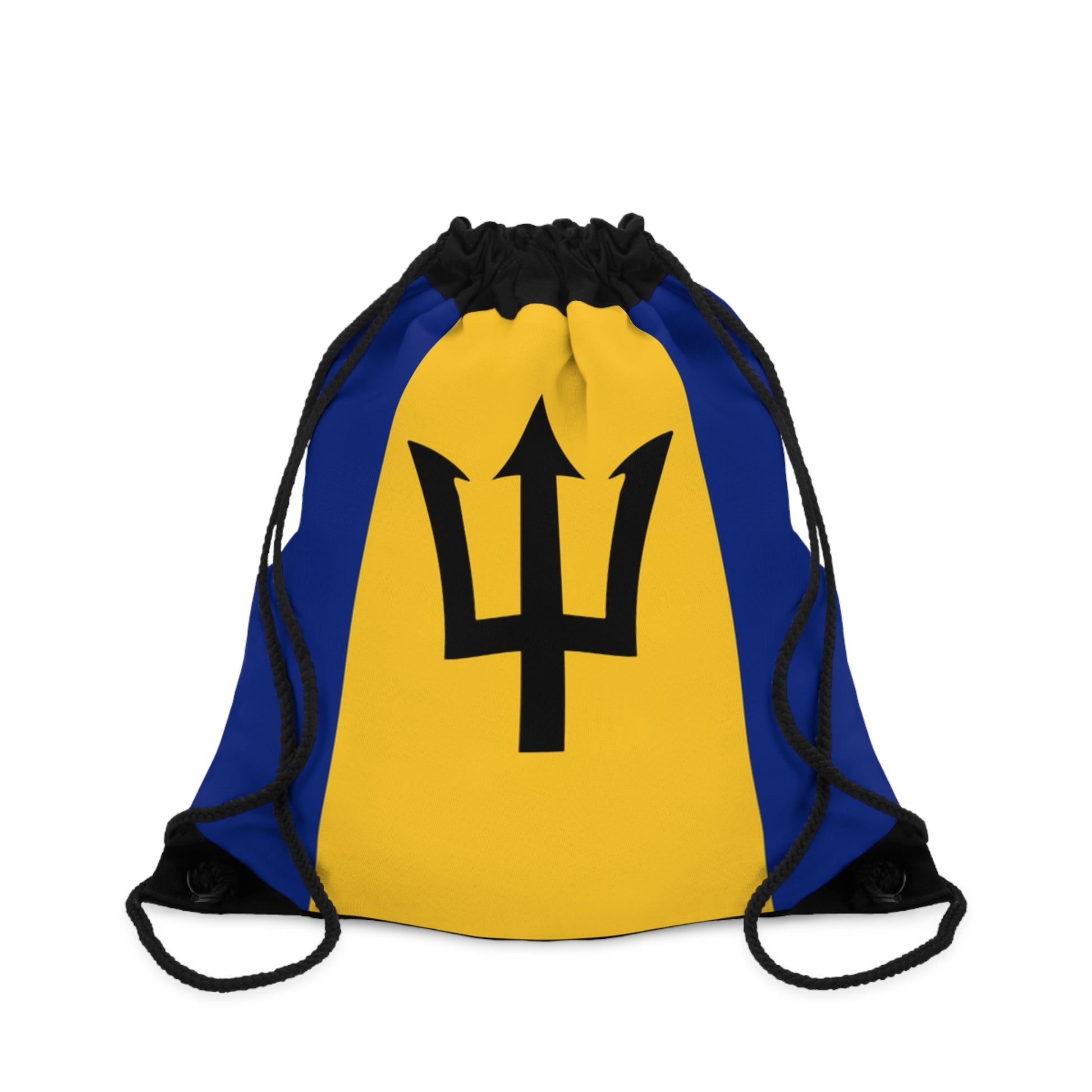 "On the go, Bajan flow!" Carry your Bajan pride on the go! This convenient drawstring bag features the stunning ultramarine, gold, and black of the Barbados flag ā representing the Atlantic waters, golden beaches, and the resilient spirit of the island.