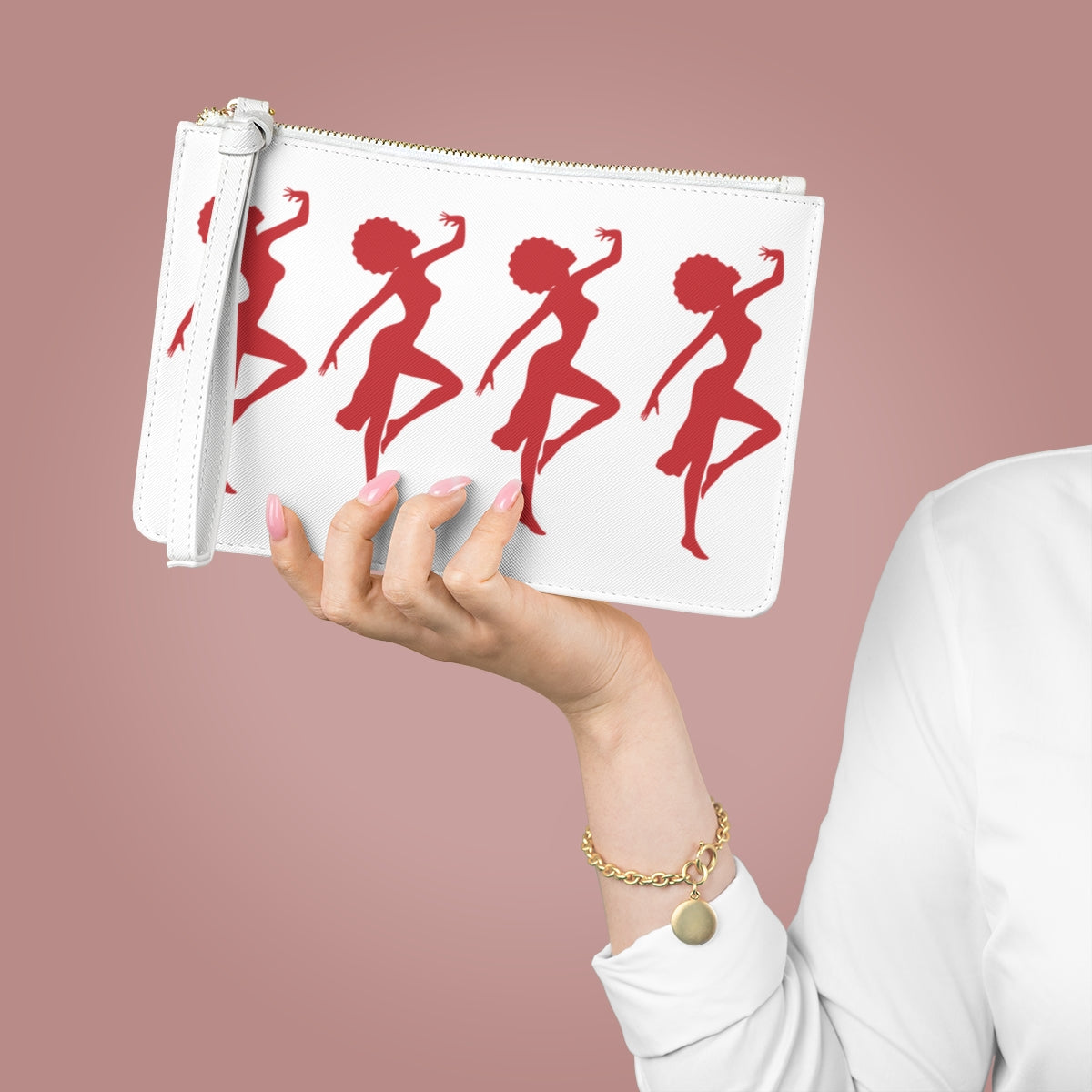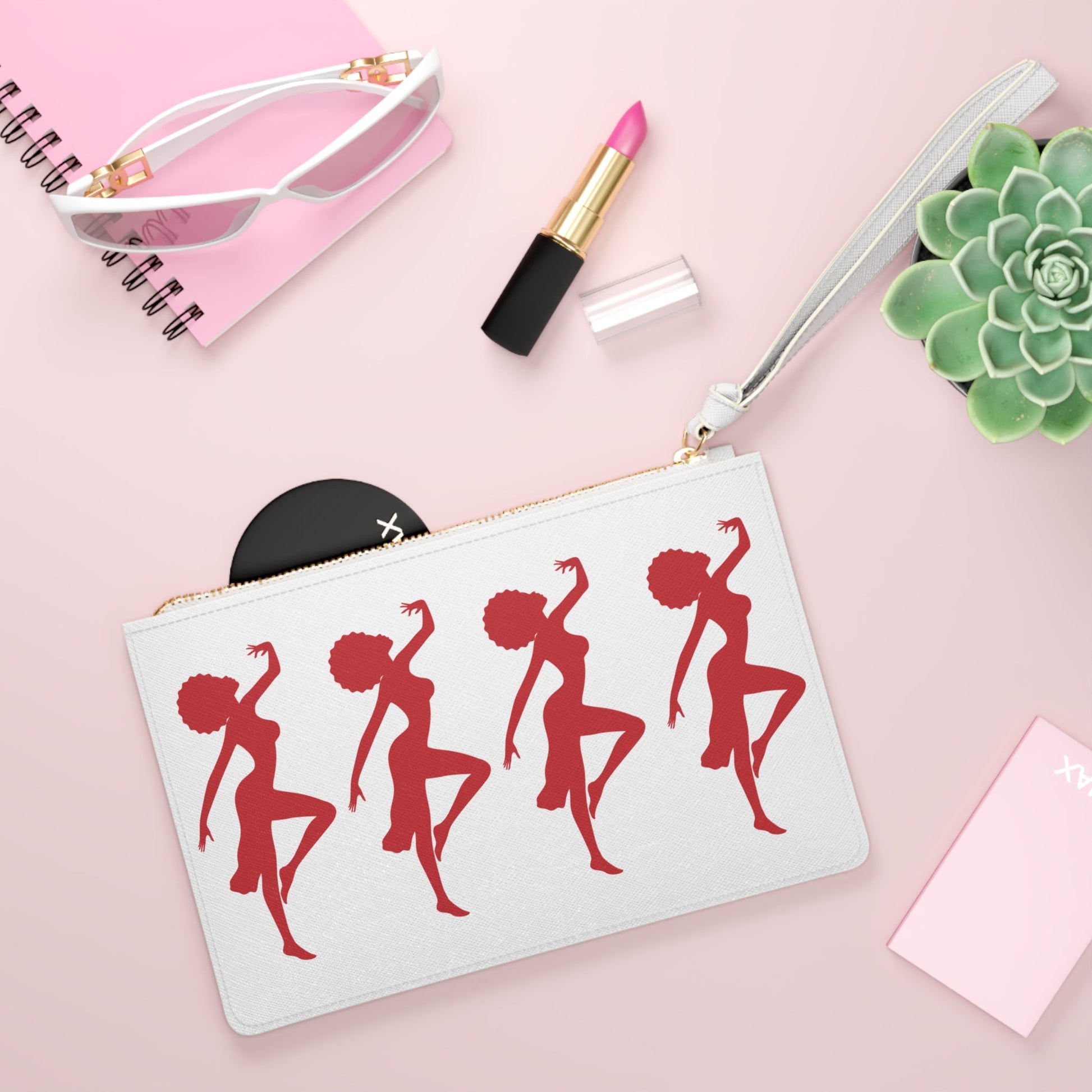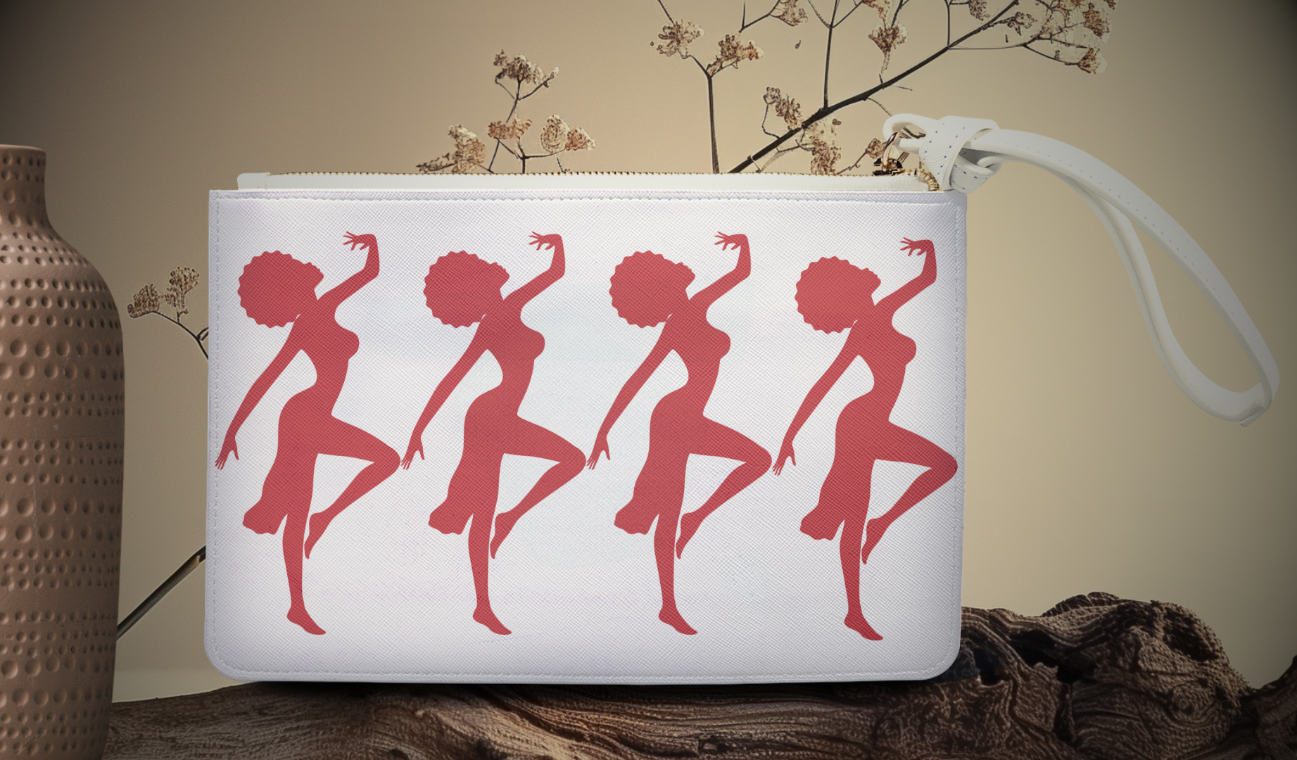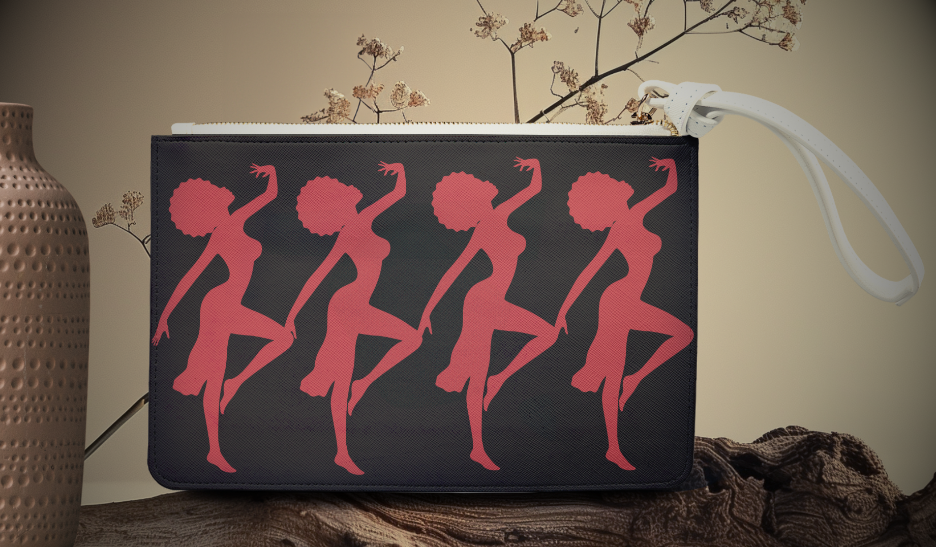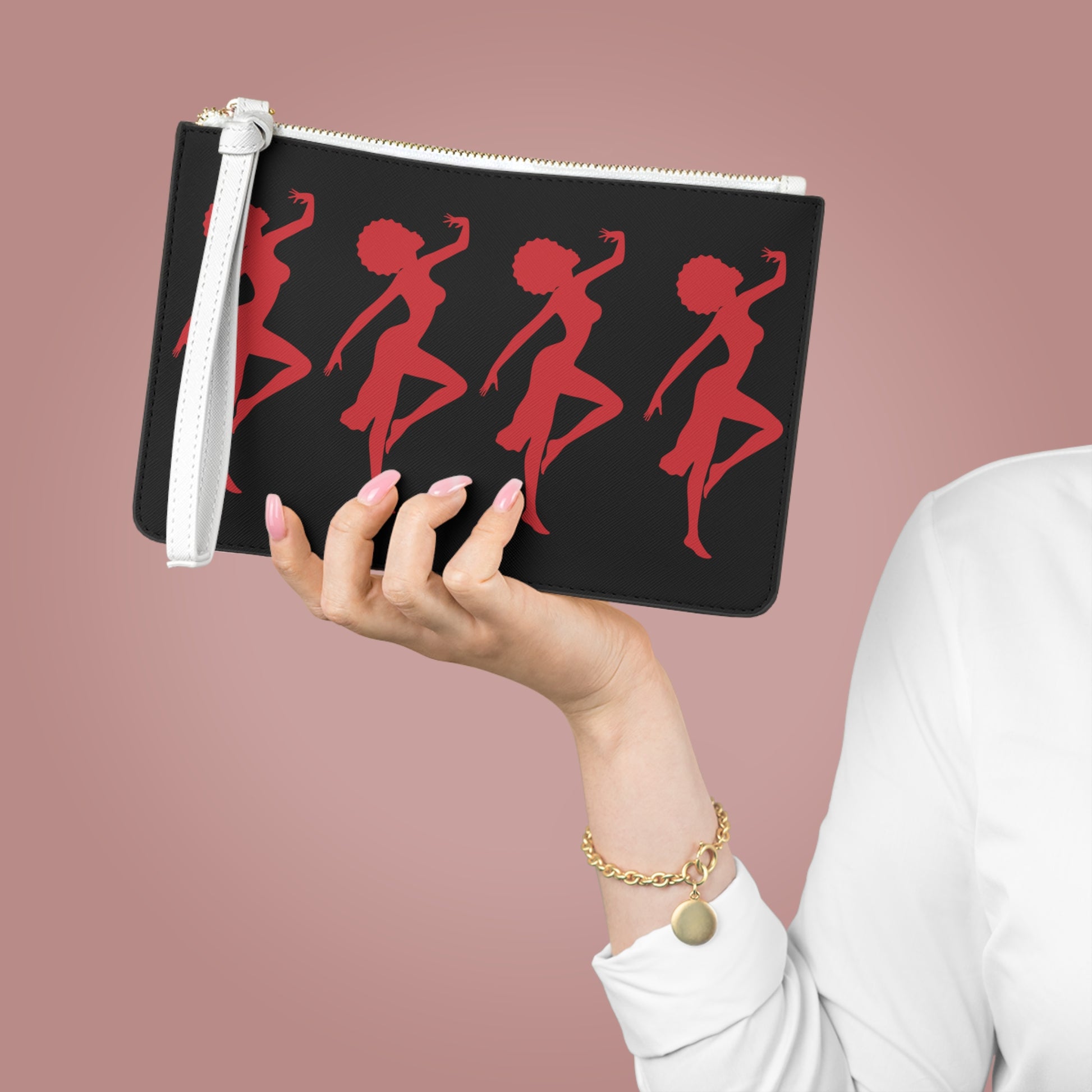 Designed with a loop handle to quickly free your hands, this custom clutch bag is made for the fashionista on the go. It can hold everyday essentials such as a phone, wallet, and keys. It features a zip fastening, a fully lined internal pocket and vegan leather.