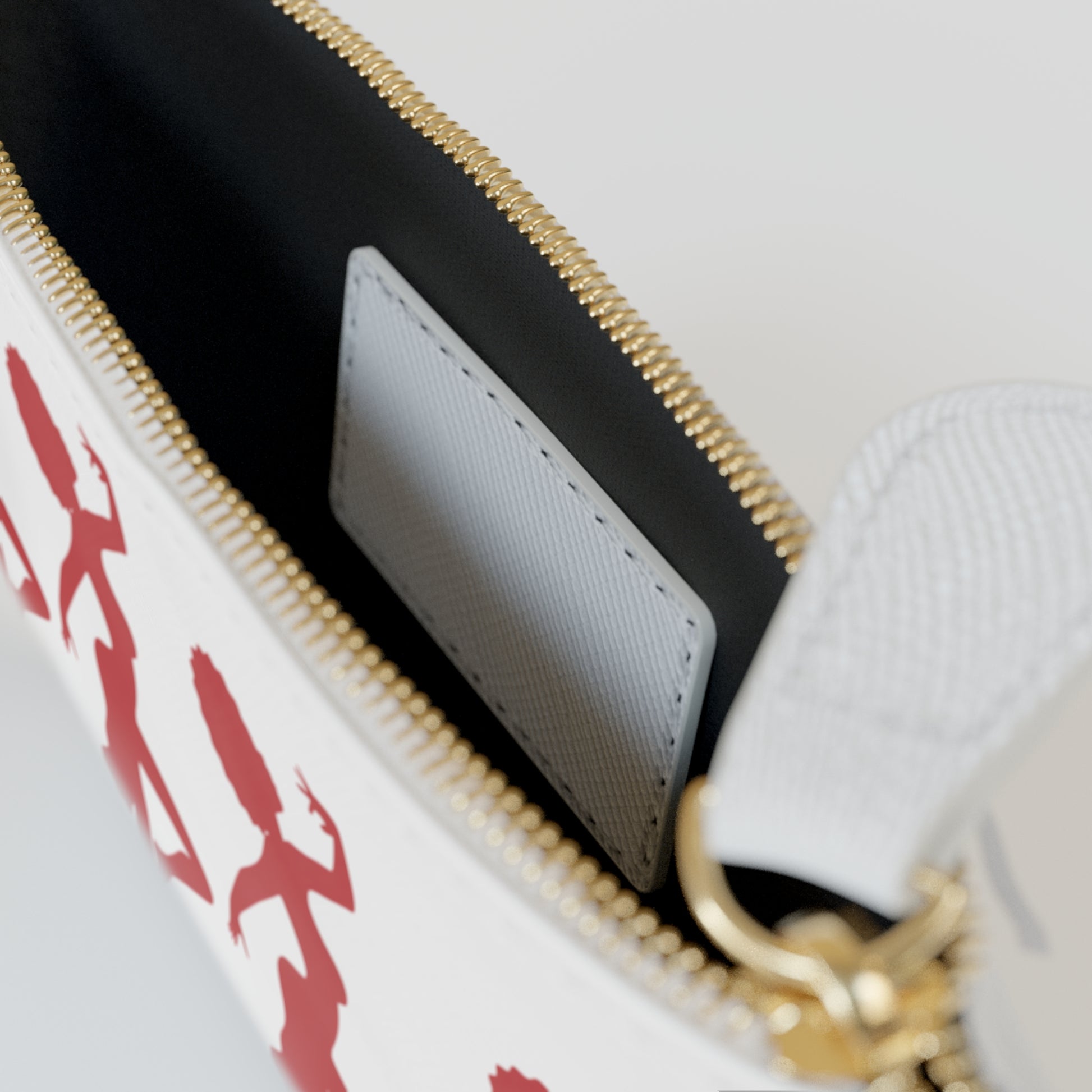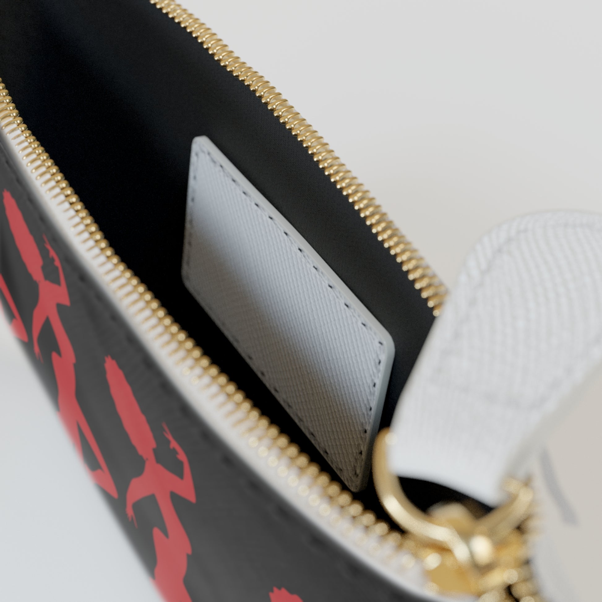 Designed to be chic and highly portable, this mini personalized wallet is made for on the go. It can hold everyday essentials such as a phone, a wallet, and keys. It features a zip fastener and it is made of vegan, cruelty-free leather.