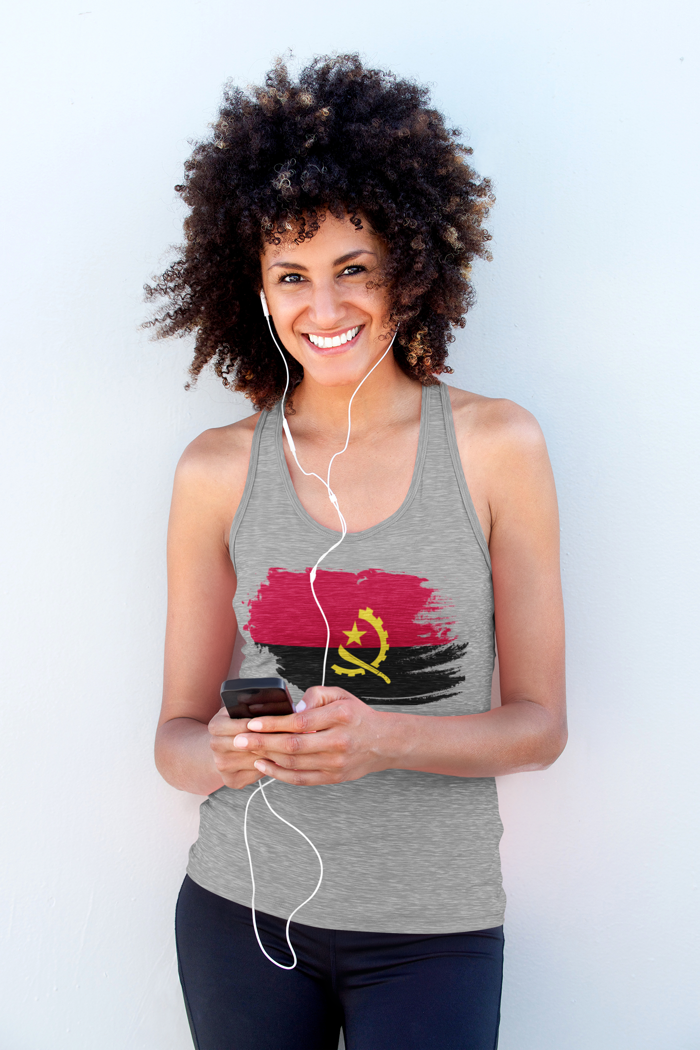 This slim fit tank-top will turn heads. The racerback cut looks good on any woman's shoulders. Made with extra light fabric this racerback tank is supremely lightweight and an excellent choice for the active lifestyle.