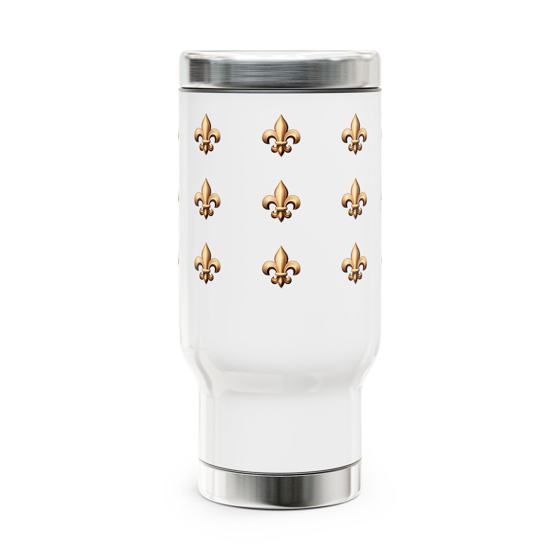 Stainless Steel Travel Mug with Handle - Fleur De Lis
