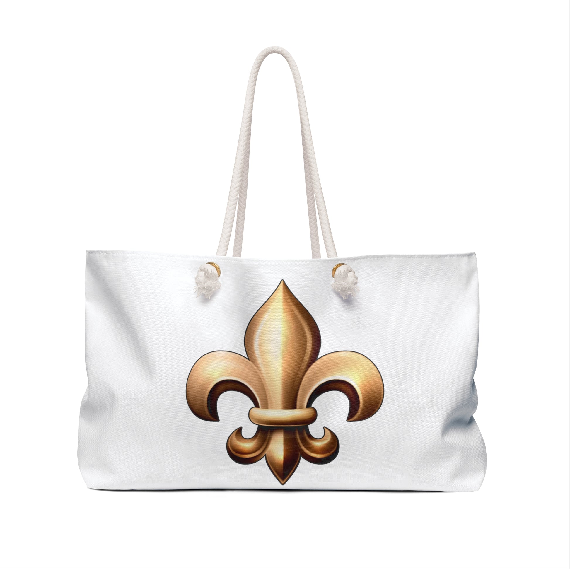 Our New Orleans inspired oversized weekender tote is perfect for your weekend at the beach or in town. The wide-mouthed, durable bag holds a generous amount of personal items and is easily held by its thick rope handles.