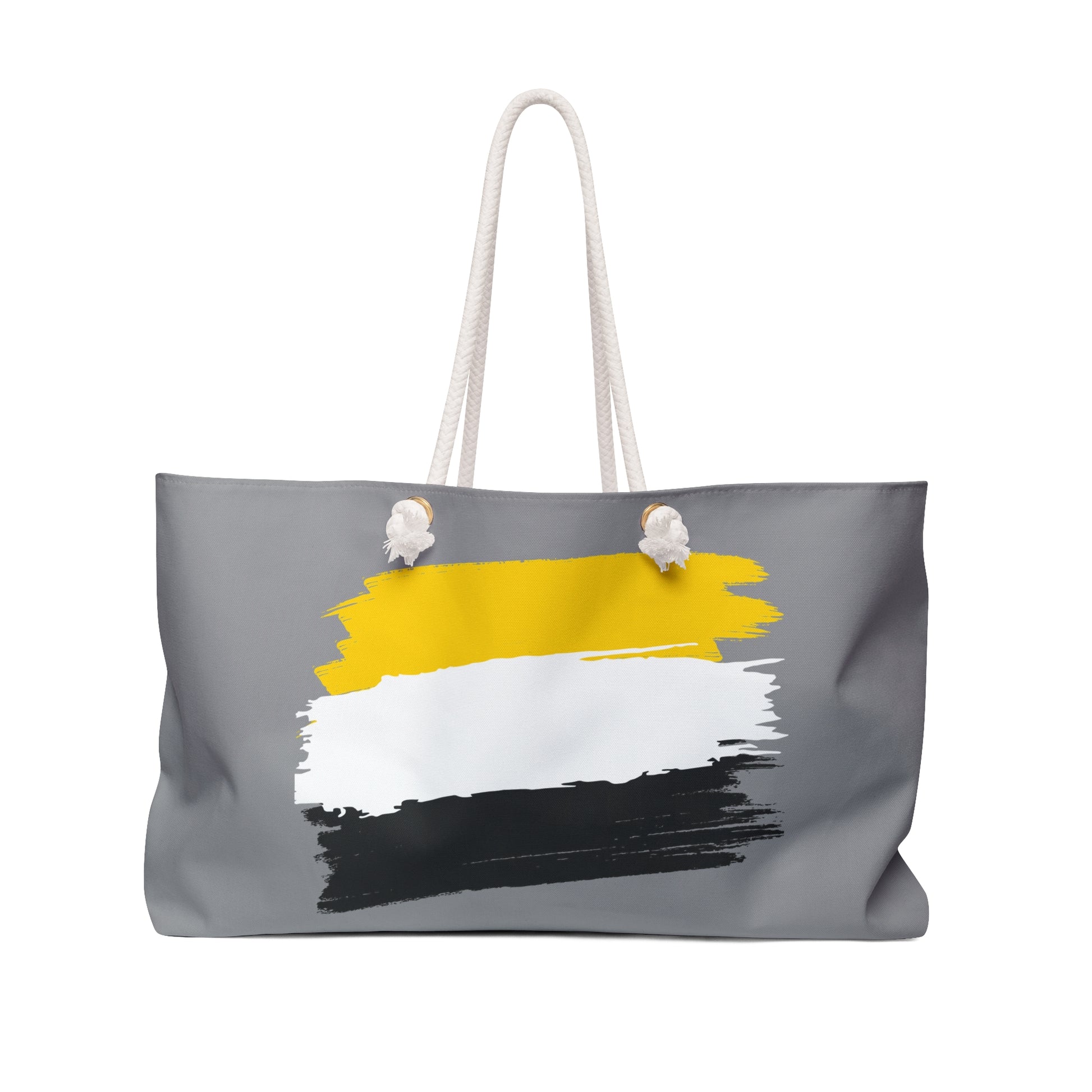 Our oversized Weekender Tote is perfect for your weekend at the beach or in town. The wide-mouthed, durable bag holds a generous amount of personal items and is easily held by its thick rope handles.